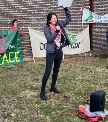I got involved in high-impact efforts like Support Our Schools (SOS) Amherst, which advocates for securing critical funding for our public schools, and co-founded Valley Families for Palestine. VFP creates family-friendly actions in solidarity with our local Arab and Muslim communities and the global movement for Palestinian liberation. We also focus on the areas where marginalized communities intersect, supporting other local groups (like the LGBTQ+ and immigrant communities) fighting against fascism and oppression.